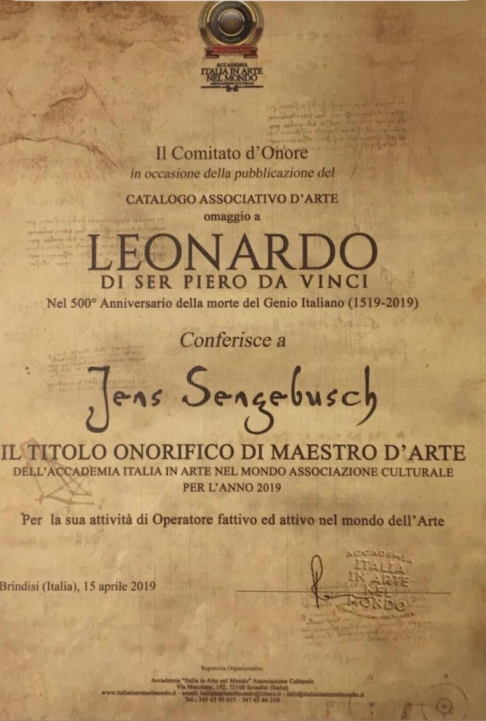 Prix international d’art 2019 « Artemisia Gentileschi » – Titre honorifique de Maître d’art